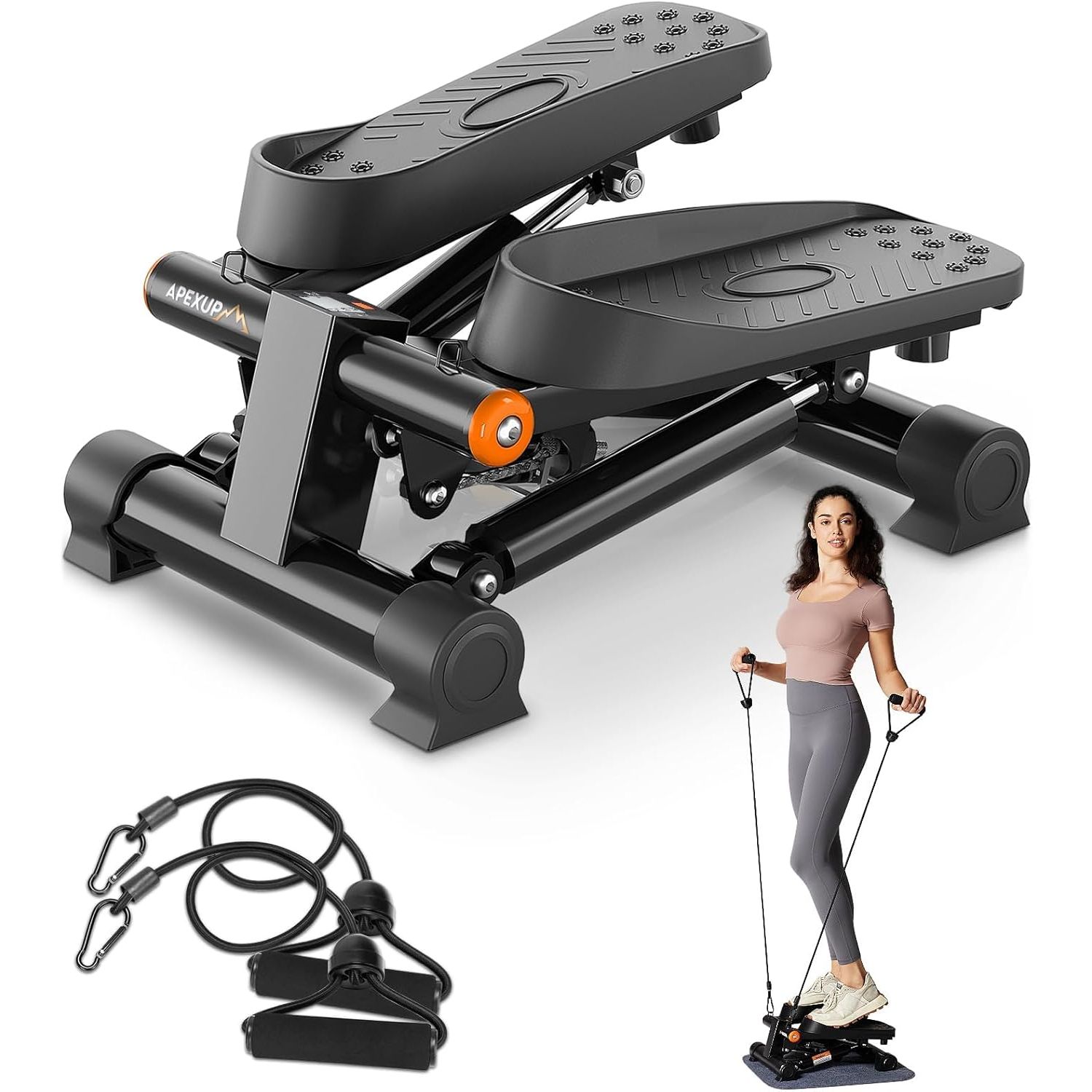 Steppers for Exercise at Home, Stair Stepper with Resistance Bands, Mat, LCD Monitor